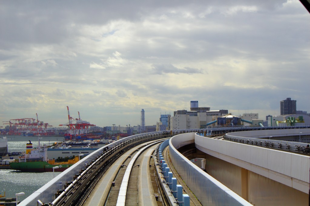 Odaiba est le quartier moderne par excellence. Et pour cause, il s’agit d’un quartier entièrement artificiel, construit sur une île remblayée sur la mer. Pour s’y rendre, la ligne de métro aérienne Yurikamome (la ligne de la « muette rieuse »), circule entre les étages des immeubles, alternant les vues entre la mer, le port et les impressionnantes autoroutes qui quadrillent la ville.