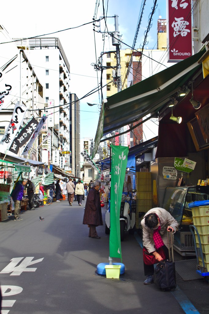 Le quartier de Tsukiji abritait autrefois le fameux marché aux poissons de Tokyo, mais celui-ci a depuis déménagé dans un autre quartier. Toutefois, un marché à ciel ouvert se maintient non loin de l’ancien marché aux poissons. L’occasion lors d’une balade d’admirer la multitude d’espèces de poissons, de crabes, et d’autres crustacés présents sur les étals.