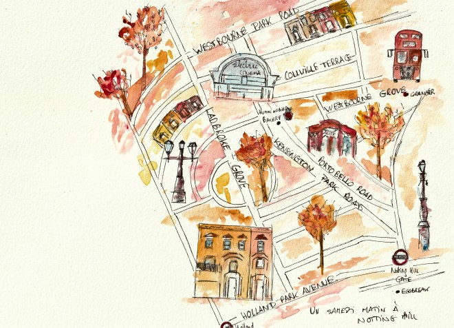 C’est en général la première image qui nous vient en tête désormais lorsque l’on pense à Notting Hill, cette comédie romantique ayant réussi, mieux que n’importe quel autre film, à faire vivre un quartier entier dans notre inconscient collectif. On connaît ces petites maisons, derrière lesquelles se cachent des portes bleues et des librairies de livres de voyage, ces jardins secrets où l’on peut s’infiltrer furtivement à la tombée de la nuit, et ce marché où passent lentement les saisons.