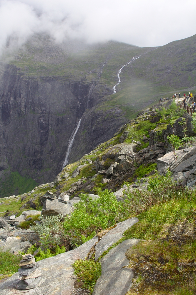 Dans la réalité, le Trollstigen est une route spectactulaire, composée de pas moins de onze virages en tête d’épingle, qui semble tout droit sortie d’un roman de fantasy (personnellement, le Trollstigen me rappelle la route de Dunharrow dans le Seigneur des Anneaux, mais c’est sans doute juste l’admiratrice de Tolkien en moi qui parle). Des hautes falaises sombres, de la brume dans la vallée, une route qui serpente au bord d’une cascade, tout y est.