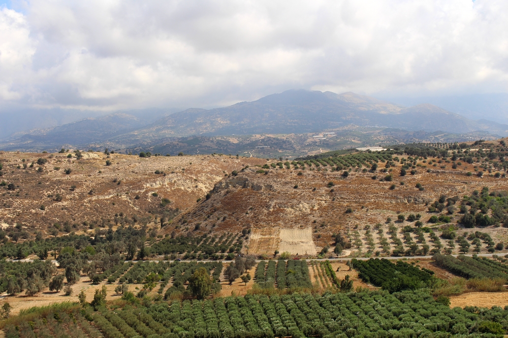 Notre petite Suzuki de location traverse la plaine de la Messara, principal foyer agricole de l’île, longeant le mont Ida (également appelé Psiloritis). Et niveau légende, ça commence très fort. Car, d’après les histoires, c’est dans une grotte situé sur cette montagne que serait né Zeus. Cronos, le père de Zeus, était un Titan, un dieu de la première génération. Et le moins que l’on puisse dire c’est qu’il n’avait pas un caractère facile. Obsédé par son pouvoir, et vivant dans la crainte de voir quelqu’un voler sa place, Cronos écarte du pouvoir quiconque ressemble à un rival…y compris ses propres enfants, Hestia, Déméter, Héra, Hadès et Poséidon, qu’il dévore allègrement naissance après naissance. A la naissance de son sixième enfant, Rhéa, la compagne de Cronos s’enfuie et cache l’enfant dans une grotte de Crète où il sera élevé par des chèvres et des nymphes (les Méliades). C’est ainsi que Zeus réchappa à l’appétit de son père et put libérer ses frères et soeurs (dont Héra qui deviendra sa compagne – on savait s’amuser à l’épque).