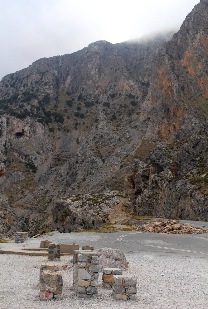Nous reprenons ensuite la route en milieu d’après-midi pour parcourir les quatre-vingt et quelques kilomètres qui nous séparent de notre destination du jour : le petit village de Chora Sfakio. Pas un long trajet a priori, mais c’est sans compter sur les nombreuses choses à voir en chemin et sur les routes (la plupart du temps en très bon état au demeurant, mais lorsque l’on est plus habitués aux plates départementales normandes qu’aux petites routes de montagne crétoises, il y a un léger temps d’adaptation qui ralentit la conduite).