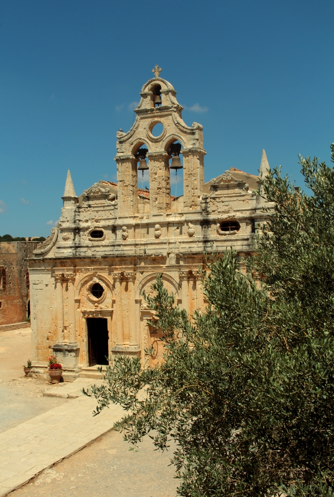 Dernier arrêt de notre voyage, entre Rethymnon et Héraklion : le tristement célèbre monastère d’Arkadi. Célèbre pour son magnifique bâtiment, mais surtout pour avoir été le siège sanglant de la révolte crétoise contre les ottomans à la fin du 19ème siècle. Réfugiés dans le monastère, une centaine de résistants crétois, hommes, femmes et enfants, tinrent le siège pendant trois jours. Acculés dans la poudrière, les résistants préférèrent faire exploser le monastère plutôt que de se rendre.