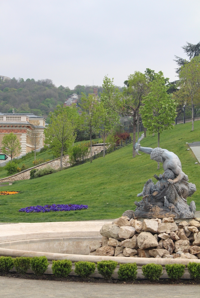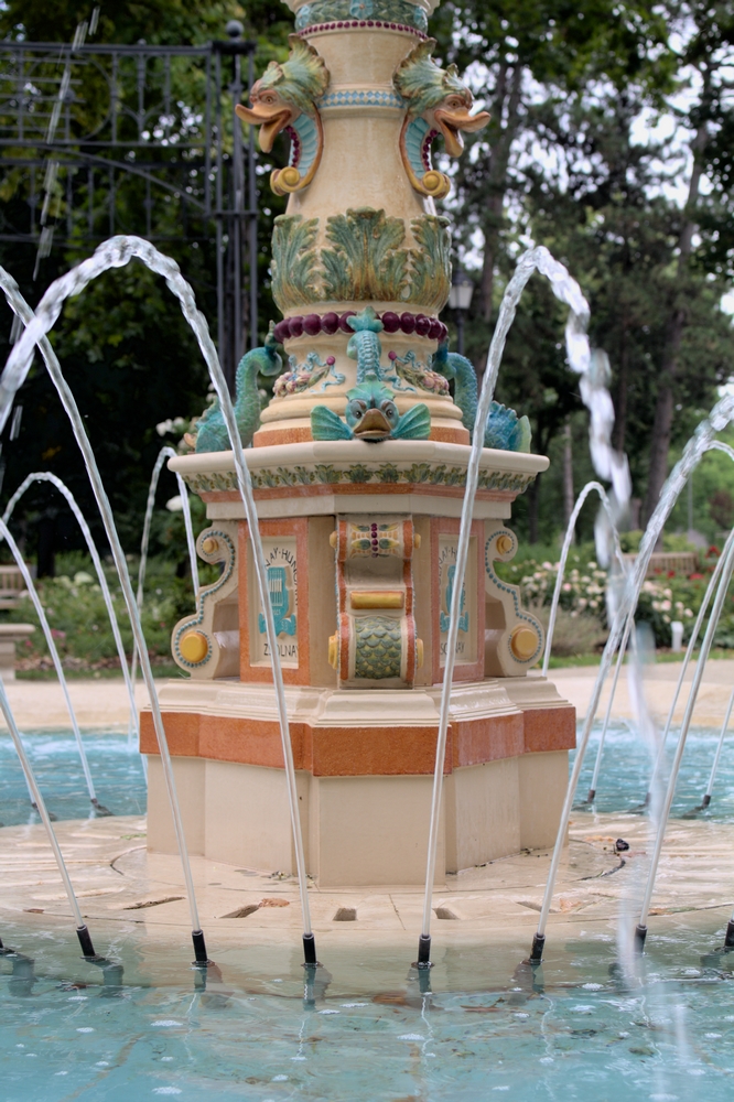 Découvrons maintenant l’autre partie du parc qui fait actuellement l’objet d’importantes rénovations. Notre premier stop sera le jardin de rose (rózsakert) qui encadre la Maison du Millénaire (Millennium Háza) et au centre duquel trône une magnifique fontaine Zsolnay (du nom d’une des célèbres fabriques de porcelaine hongroise). Le tout vient tout juste d’être restauré et offre un cadre magnifique pour une petite pause à l’ombre. A mes yeux, c’est l’un des plus beaux détours du parc.