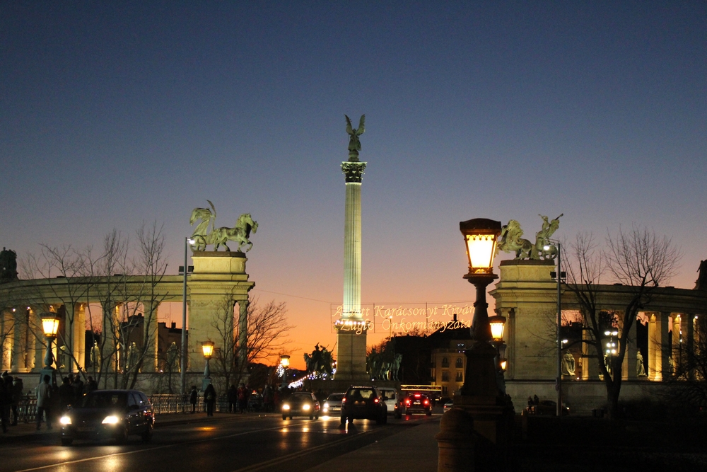 L’Avenue nous emmène jusqu’à la Place des Héros (Hősök tere), probablement la place la plus connue de la ville. Construite en 1896 pour célébrer les mille ans de l’arrivée des Magyars en Hongrie, elle abrite en son centre le Monument du Millénaire qui représente les grands personnages de l’histoire hongroise. Le tout est encadré par le Musée des Beaux-Arts (Szépművészeti Múzeum) et le Műcsarnok, une galerie d’arts.