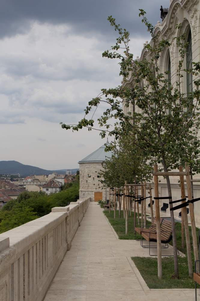 Depuis le jardin de rose, on accède facilement à la maison de la musique hongroise (Magyar Zene Háza), salle d’exposition dédiée à la musique, et plus particulièrement à la musique traditionnelle et folklorique. L’ouverture du musée est toute récente, et le bâtiment est flambant neuf (très intéressant avec son toit à trous qui laisse passer les arbres alentours).