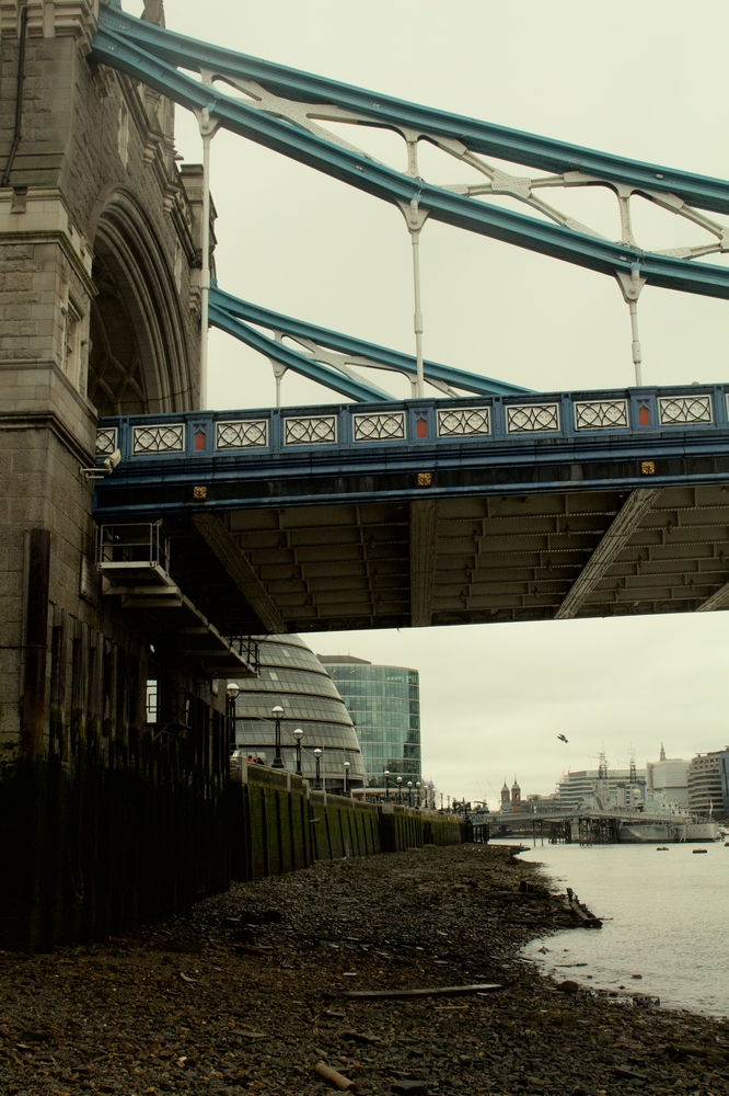 C’est depuis le quai de la Tamise que l’on perçoit le mieux l’immensité du Tower Bridge et de ses imposantes colonnes de pierre posées au fond de l’eau. Le sable est aussi gris que le ciel et les vagues du fleuve aussi maussades que la météo. C’est pourtant bien ici, au pied d’un escalier verdâtre et mousseux (du nom de Horselydown steps) que commence notre balade du jour, entre les cris des goélands et les rires des touristes. Ici, au pied du Tower Bridge, dans le quartier de Southwark.