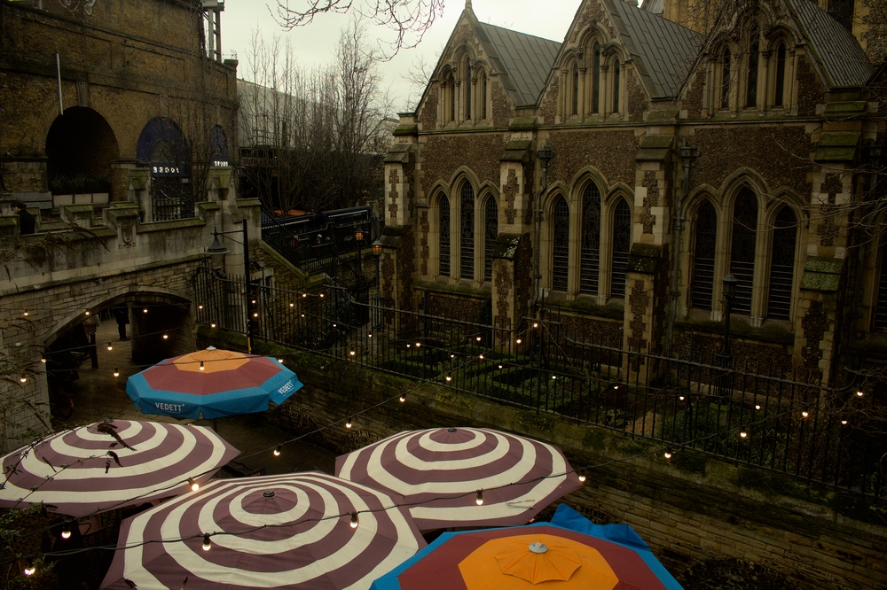 Je continue mon chemin vers Borough Market lorsque mon regard est attiré par la très belle cathédrale de Southwark (Southwark Cathedral) ainsi que par un petit bistrot planté dans une cour attenante. L’endroit paraît étrangement paisible, surtout lorsque l’on se souvient que le tout est situé au croisement d’une quatre voies et des voies ferrées (et que le temps que je prenne ma photo une bonne dizaine de personnes sont passées à côté de moi pour se rendre au marché situé juste à côté). La cathédrale abrite apparemment également un jardin botanique dont les origines remontent au Moyen-Age. Il n’y aura pas de visite pour moi malheureusement, l’endroit semblant fermé lors de mon passage.